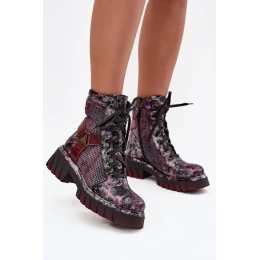 Dámské kotníčkové kožené workery model 21903308 Bordó vzor - Maciejka