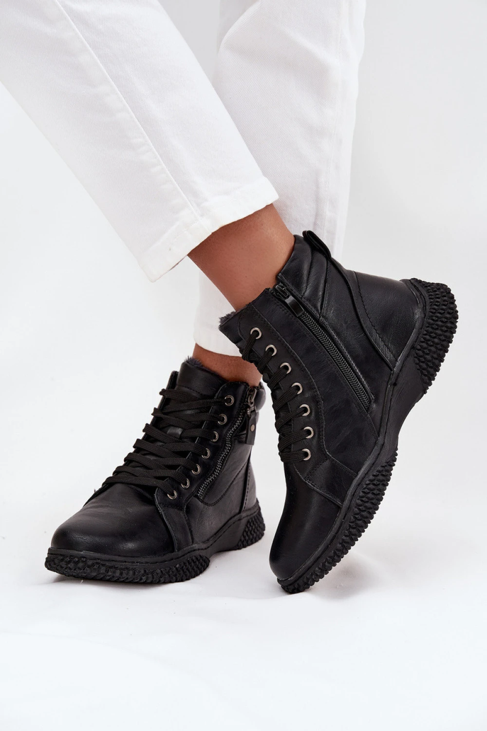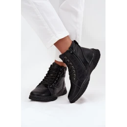 Dámské botky z ekokože jsou stylovou a pohodlnou obuví na chladnější dny. Vnitřek je vyložen měkkým kožíškem, který poskytuje teplo a pohodlí při nošení. Model kombinuje šněrování s dvojitou sponou, přičemž jedna slouží jako ozdobný prvek, dodávající módní charakter. Skvělé na každodenní nošení.