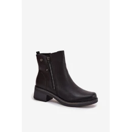 Dámské boty z eko kůže jsou praktickou a stylovou obuví na chladnější dny. Umístěny na stabilním podpatku typu kostka, zajišťují pohodlí a elegantní vzhled. Vybaveny dvojitým zipem, usnadňují oblékání a sundávání. Vnitřek vyhřátý obuvní přikrývkou zaručuje teplo a komfort během nošení. Při výběru velikosti se řiďte tabulkou velikostí. Při výběru velikosti se řiďte tabulkou velikostí.
