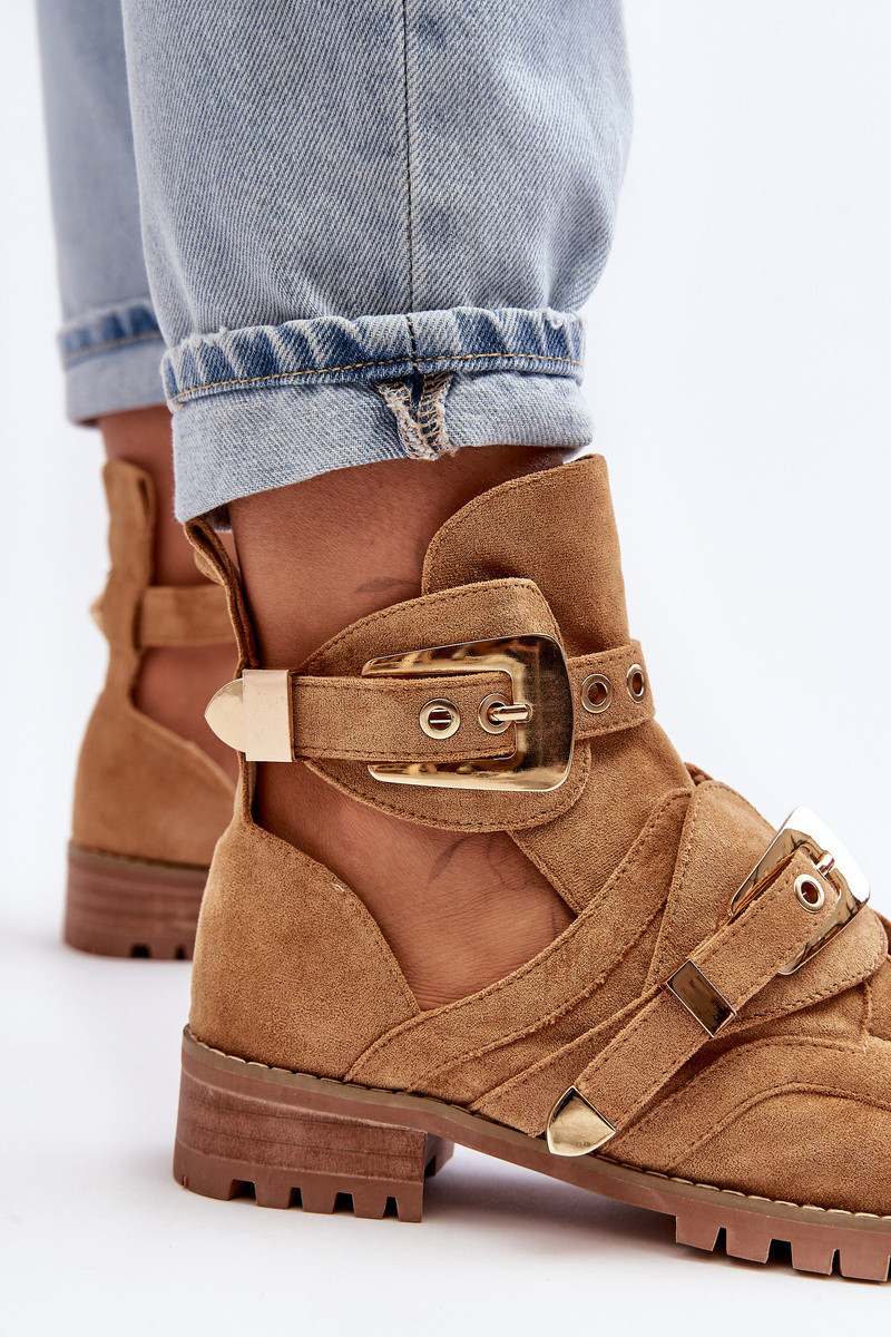 Pokud se chcete předvést ve světě módy nebo se alespoň ukázat z té nejlepší stránky, pak tyto semišové boty pro vás budou ideální volbou. Vypadají velmi impozantně a zlaté přezky jim dodávají rockový charakter. Mají jedinečný design - jsou částečně vykrojené, takže zajišťují dostatečnou ventilaci nohy. Vysoká, traktorová podešev dokonale ledí se zbytkem boty. Nečekejte a nakupujte, dokud jsou k dostání! Při výběru si zkontrolujte tabulku velikostí.