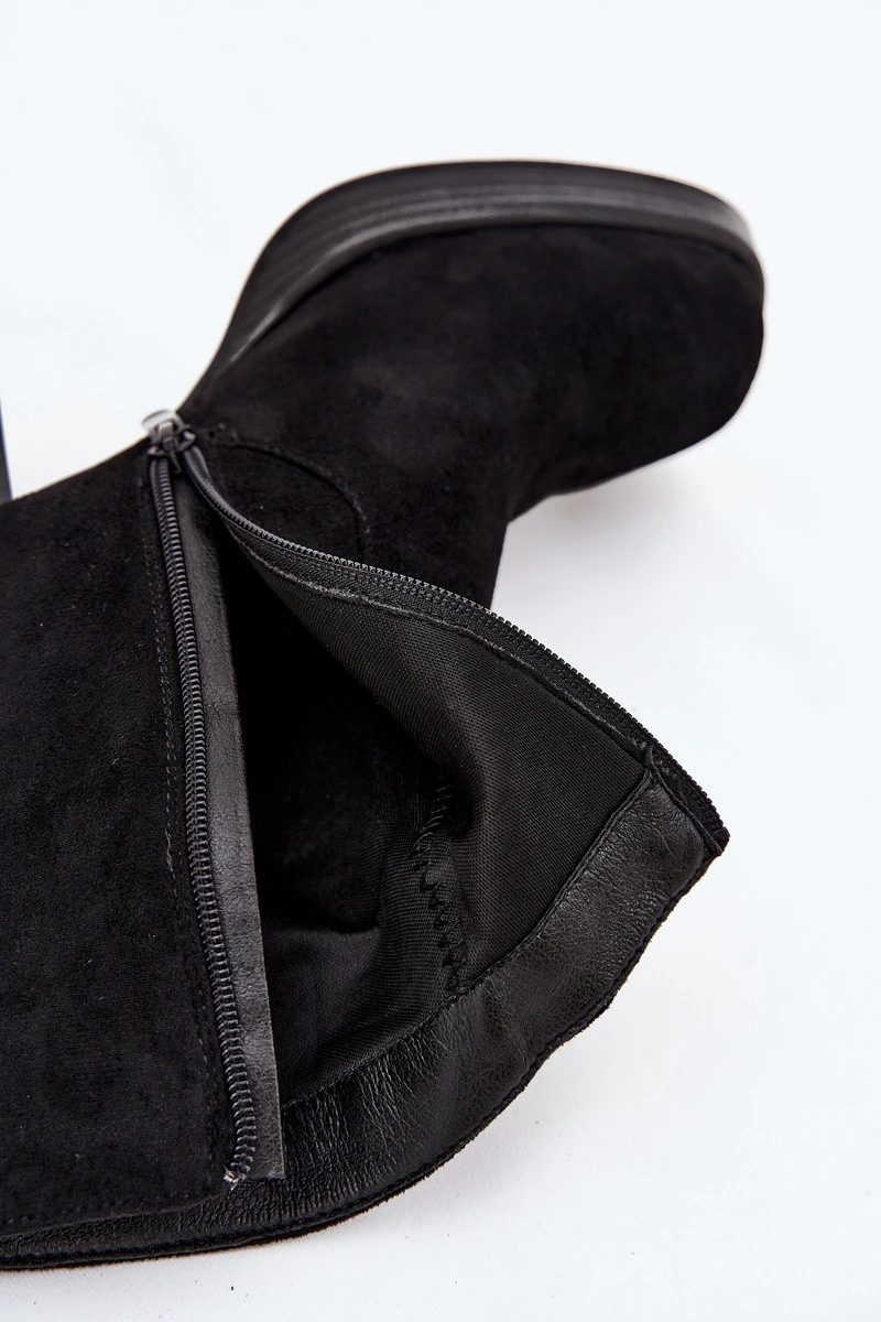 Dámské kotníkové boty vyrobené z eko semiše jsou elegantní volbou pro podzimní a zimní sezónu. Model s stabilním podpatkem ve tvaru sloupku zajišťuje pohodlí a jistotu kroku, zároveň jemně zeštíhluje siluetu. Boty jsou zapínány na zip, což usnadňuje jejich oblékání a svlékání. Zaoblené špičky dodávají celkovému vzhledu klasický, ženský charakter. Jsou to univerzální boty, které skvěle poslouží jak při každodenním nošení, tak u elegantnějších outfity. Při výběru velikosti se prosím řiďte tabulkou velikostí. Při výběru velikosti se řiďte tabulkou velikostí.