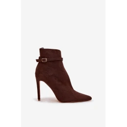 Dámské kotníkové boty na jehlovém podpatku z eko semiše Amalundi – čokoládové