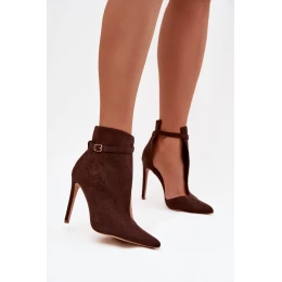 Dámské kotníkové boty na jehlovém podpatku z eko semiše hnědé model 21757574 - Boto