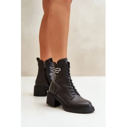 Dámské kotníkové boty od značky Vinceza jsou skvělou volbou na chladnější dny. Vyrobeno z přírodní kůže. Zabudované na masivním podpatku, který zajistí stabilitu při každém kroku. Model má šněrování s dodatečným zapínáním na zip, což usnadňuje obouvání a zouvání a umožňuje lepší přizpůsobení noze. Zaoblené špičky. Vnitřek zateplený příjemnou na dotek obuvnickou dekou. Při výběru velikosti se prosím řiďte tabulkou velikostí.