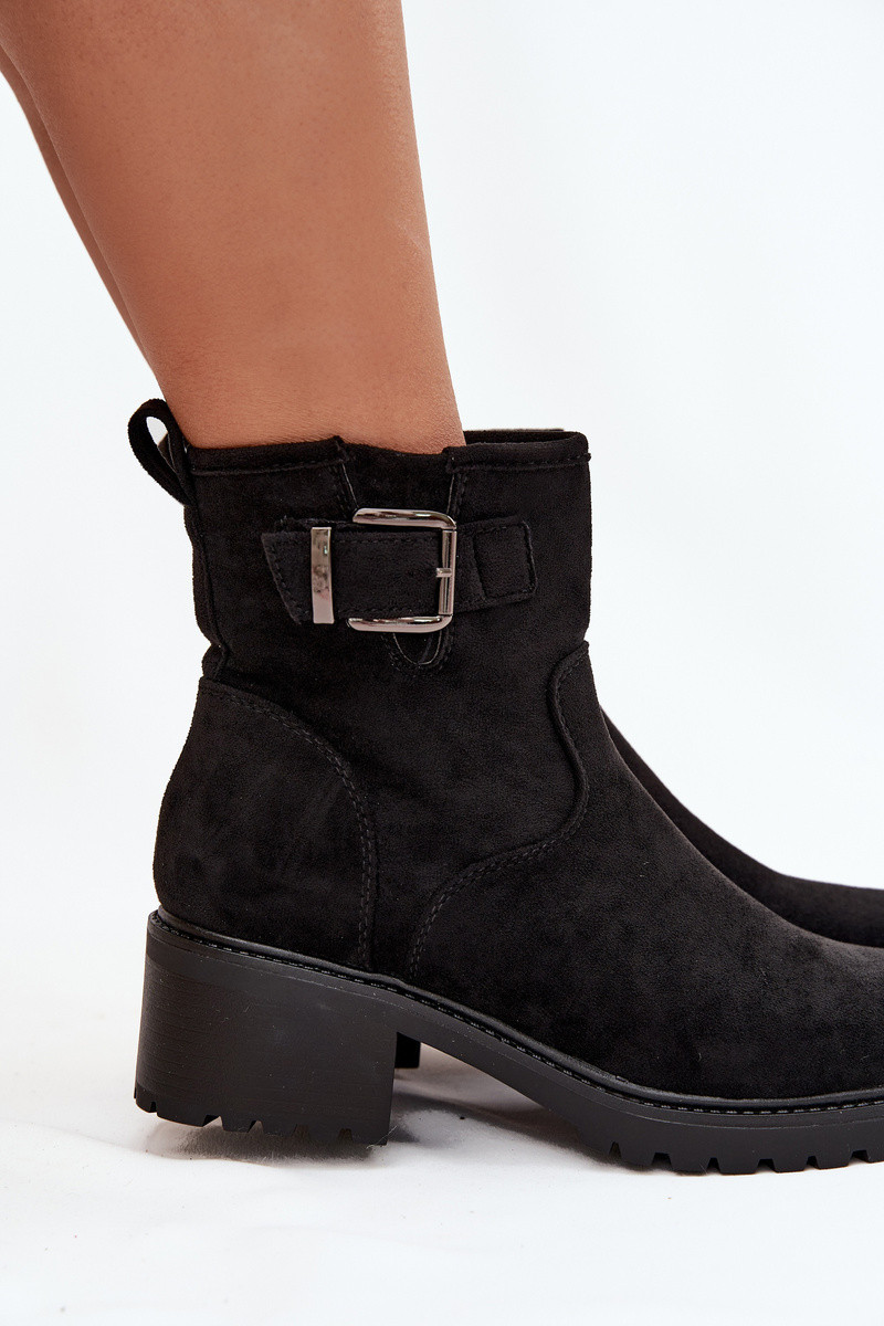 Dámské kotníkové boty na nízkém podpatku s klípkem a s přezkou Helvina – černé
