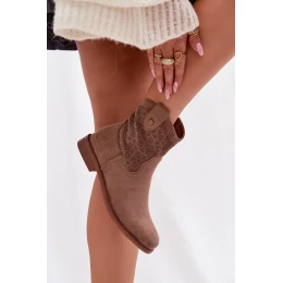 Dámské kotníkové boty na nízkém podpatku s krajkovým vzorem S.Barski HY61-8025 Hnědé