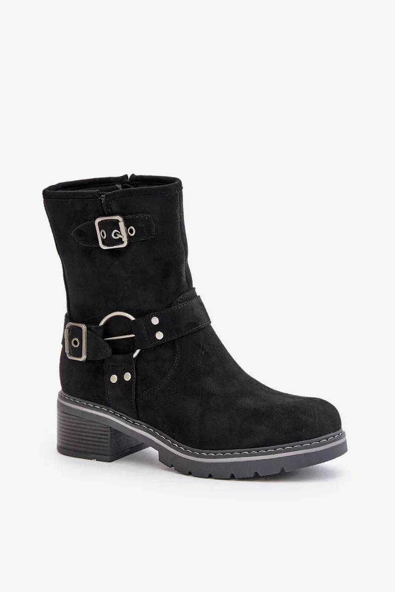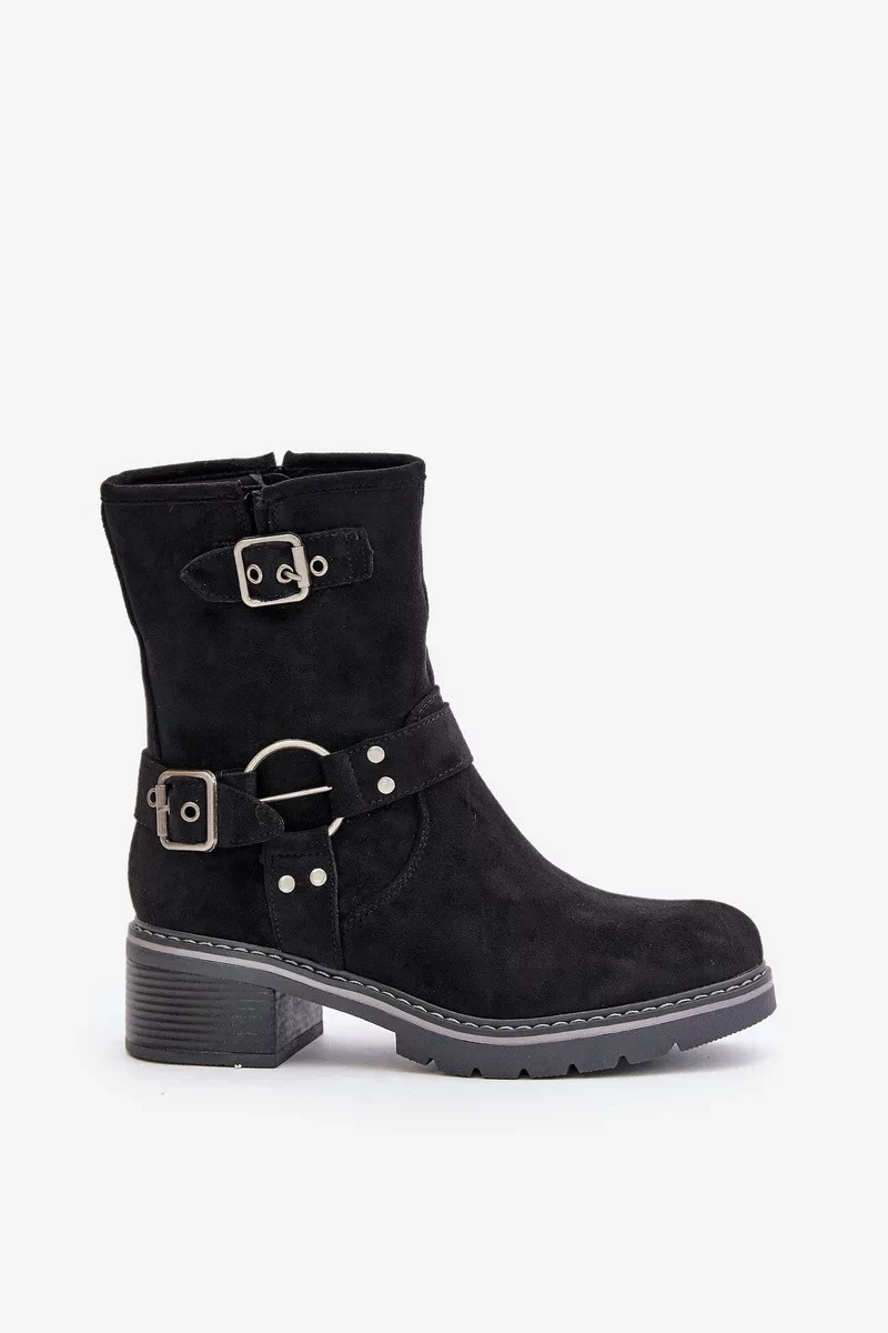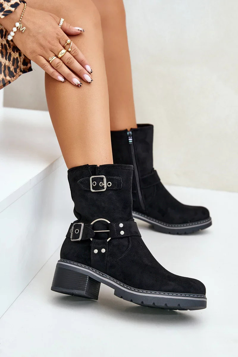 Dámské Kotníkové Boty Na Nízkém Podpatku S Přezkami Černé Zudra