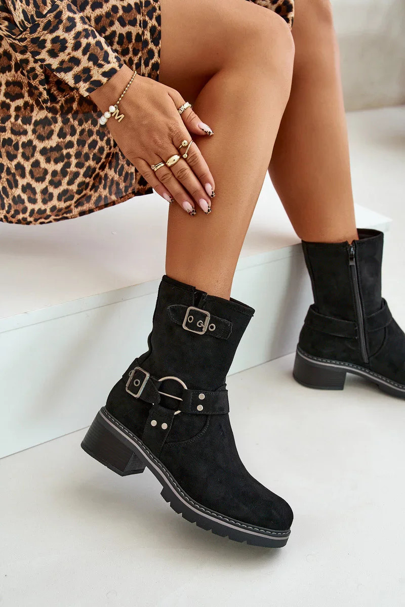 Přidání recenze k Dámské Kotníkové Boty Na Nízkém Podpatku S Přezkami Černé Zudra