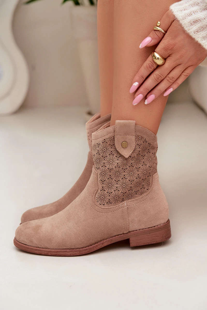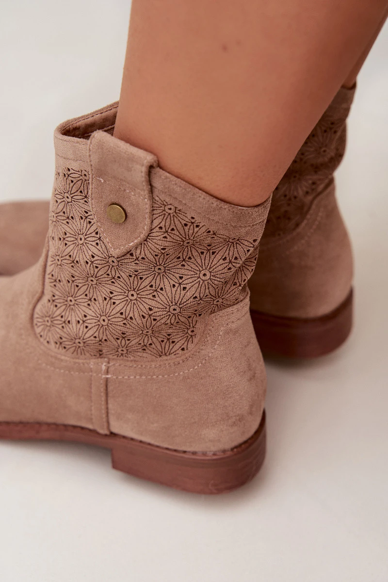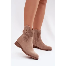 Dámské kotníkové boty na nízkém podpatku s vzorem Béžové model 22007414 - S.Barski