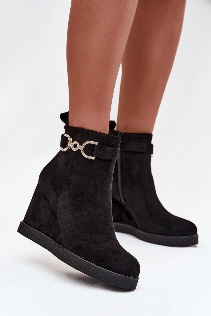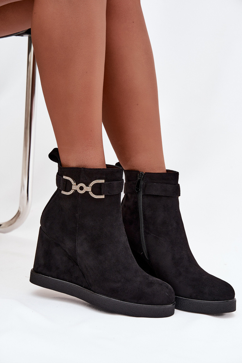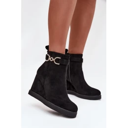 Dámské boty z eko semiše jsou stylovou volbou pro ženy, které ocení pohodlí a moderní vzhled. Umístěny na platformě, zajišťují pohodlné nošení a jemně zvýrazňují siluetu, zatímco zaoblené špičky jim dodávají klasický charakter. Model se vyznačuje páskem s ozdobným detailem na horní části boty, který dodává celkovému vzhledu elegantní akcent. Zip na straně usnadňuje obouvání a sundávání, což z nich činí praktickou volbu pro každodenní nošení. Při výběru velikosti se řiďte tabulkou velikostí. Při výběru velikosti se řiďte tabulkou velikostí.