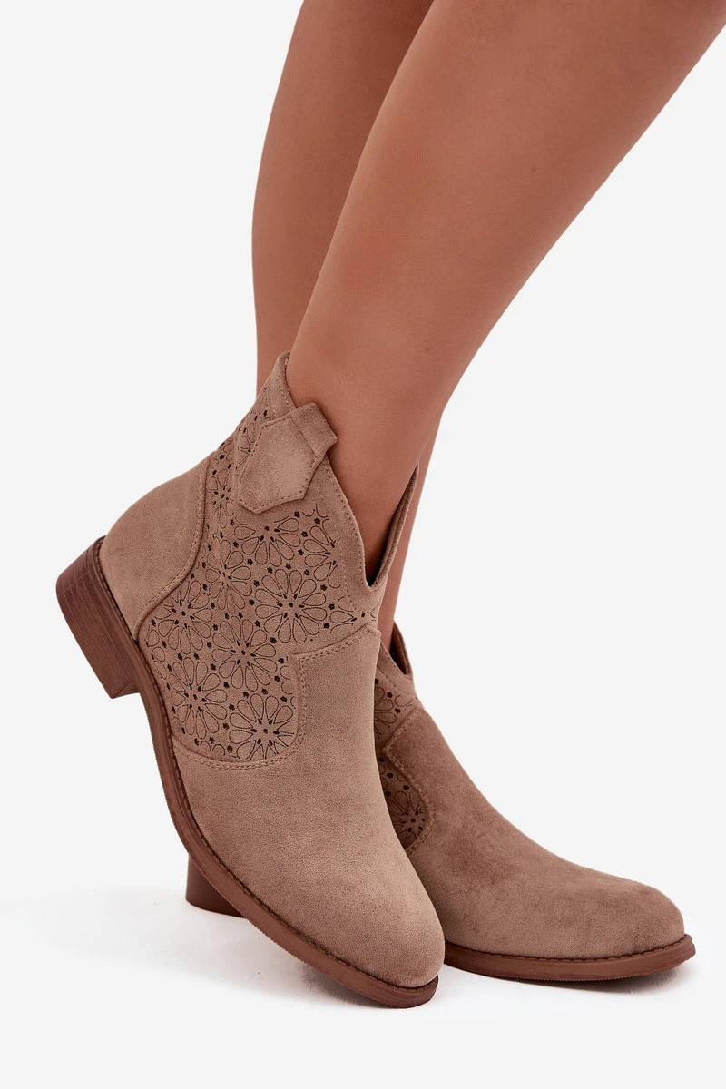Dámské kotníkové boty značky S.Barski vyrobené z vysoce kvalitního ekocouzu. Model je na ploché podrážce, která zajišťuje stabilitu a pohodlí při každodenním nošení. Zaoblené špičky. Jemný vzor s otvory na svršku přidává jemný, ženský detail, který zdůrazňuje výjimečný styl obuvi. Praktické zapínání na zip usnadňuje oblékání a svlékání, což činí boty funkčním prvkem vašeho šatníku. Jedná se o univerzální model, který se skvěle hodí jak k volnočasovým outfitům s kalhotami, tak k elegantnějším stylům s šaty nebo sukní. Při výběru velikosti se řiďte tabulkou velikostí. Při výběru velikosti se řiďte tabulkou velikostí.