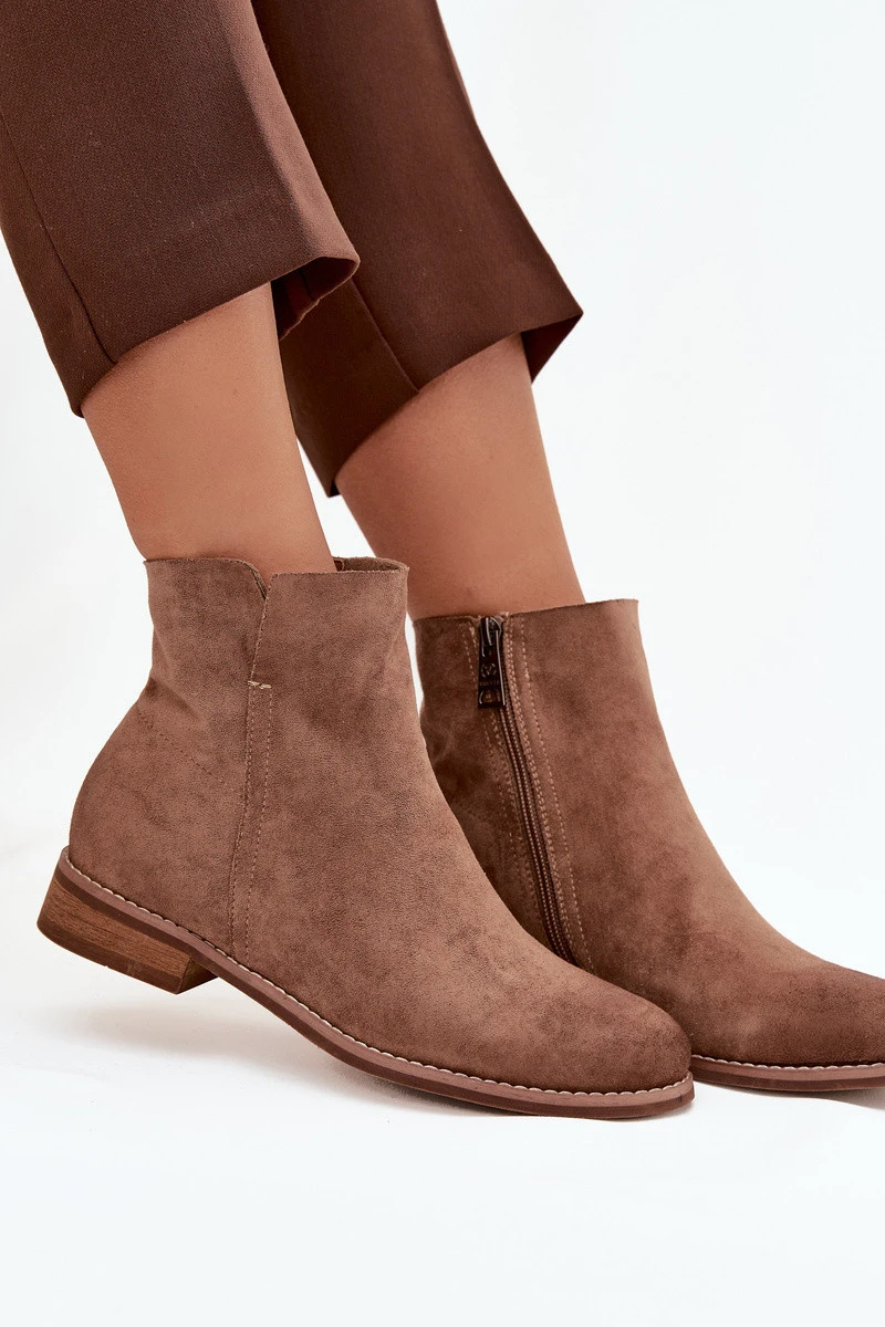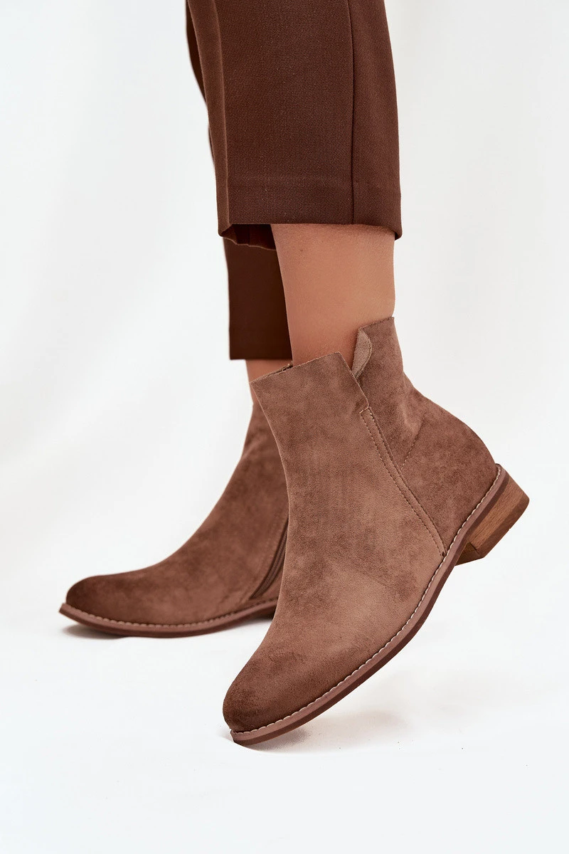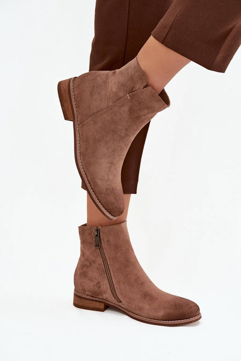 Dámské kotníkové boty na ploché podrážce model 21712281 světle hnědé - VINCEZA