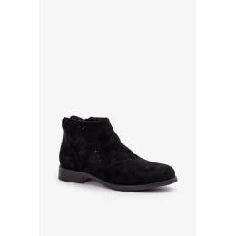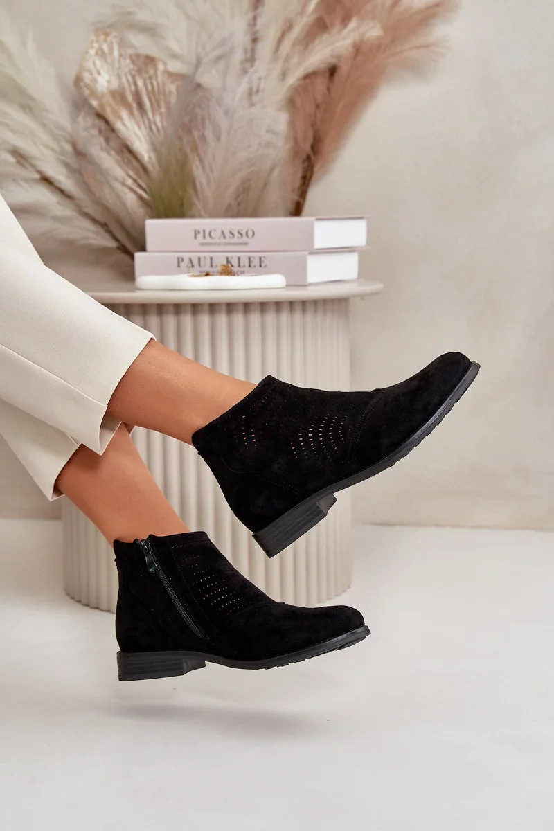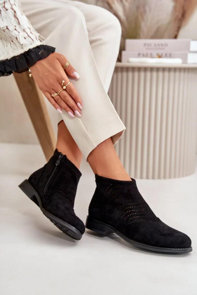 Dámské Kotníkové Boty Na Plochém Podpatku Ažurové Černé S.Barski