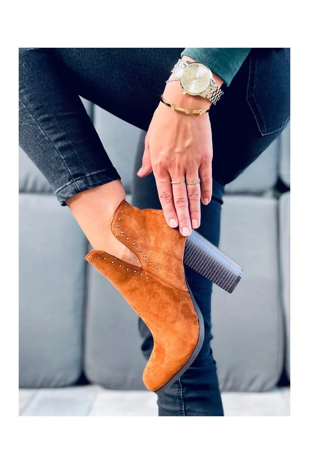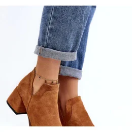Dámské kotníkové boty na sloupkovém podpatku model 19908010 Hnědá Camel - SEASTAR
