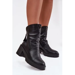 Dámské kotníkové boty na podpatku s dvojitým zipem Černé model 21708495 - VINCEZA