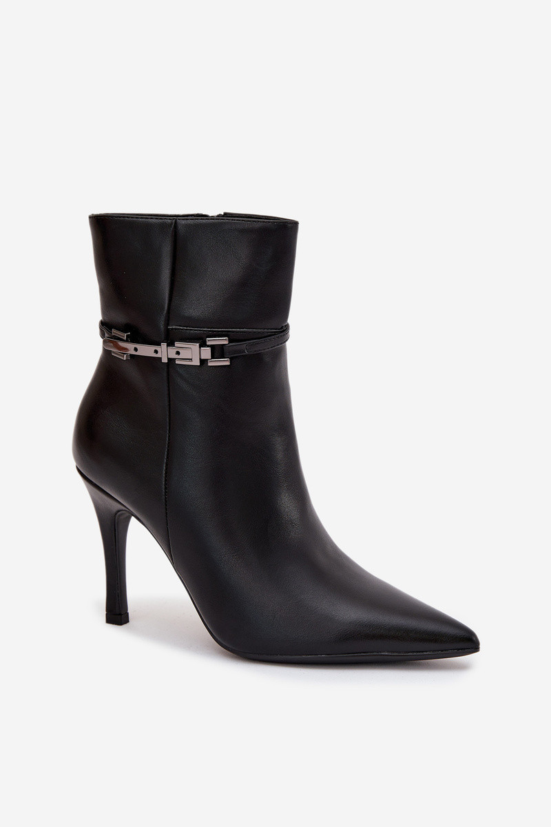 Dámské kotníkové boty na podpatku s páskem a vyhřívané černé model 21710807 - Boto