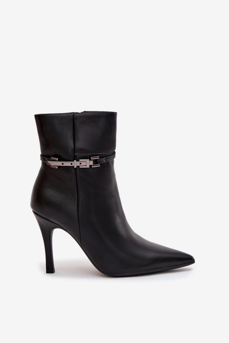 Dámské kotníkové boty vyrobené z ekologické kůže jsou elegantní volbou na chladnější dny. Umístěny na štíhlém podpatku krásně zeštíhlují postavu a špičaté špičky podtrhují ženský charakter obuvi. Vnitřek vyhřívaný obuvníkem zajišťuje pohodlí a teplo. Stylovým detailem je pásek se stříbrným prvkem umístěný na svršku, který dodává celku výrazný, moderní vzhled. Tento model je ideální jak pro každodenní, tak i elegantní styly. Při výběru velikosti se řiďte tabulkou velikostí. Při výběru velikosti se řiďte tabulkou velikostí.EAN čárové kódy zboží jsou: