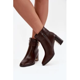 Dámské kotníkové boty na podpatku s páskem a zlatým detailem čokoládové Galinne