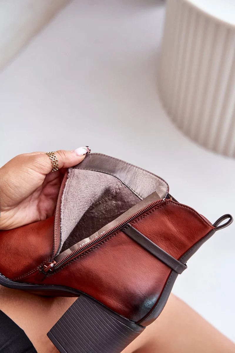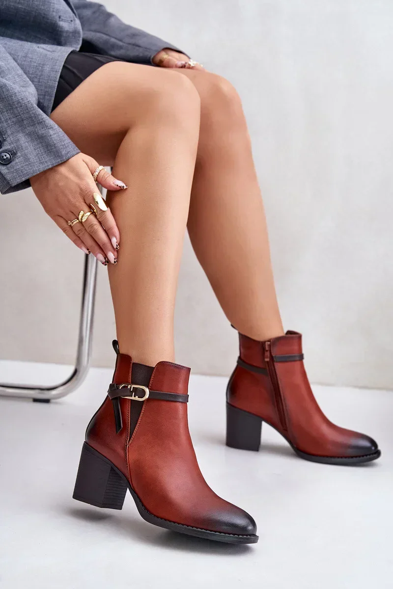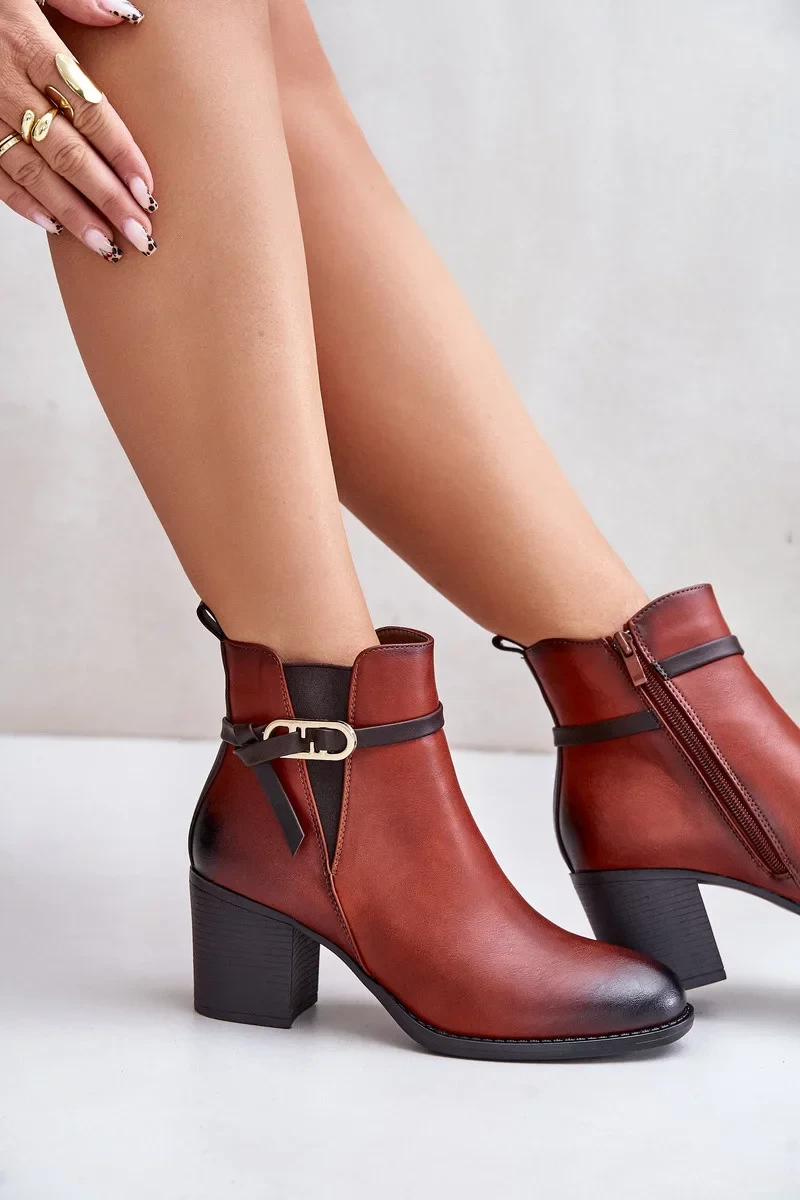 Dámské Kotníkové Boty Na Podpatku S Páskem Hnědé Zinithia