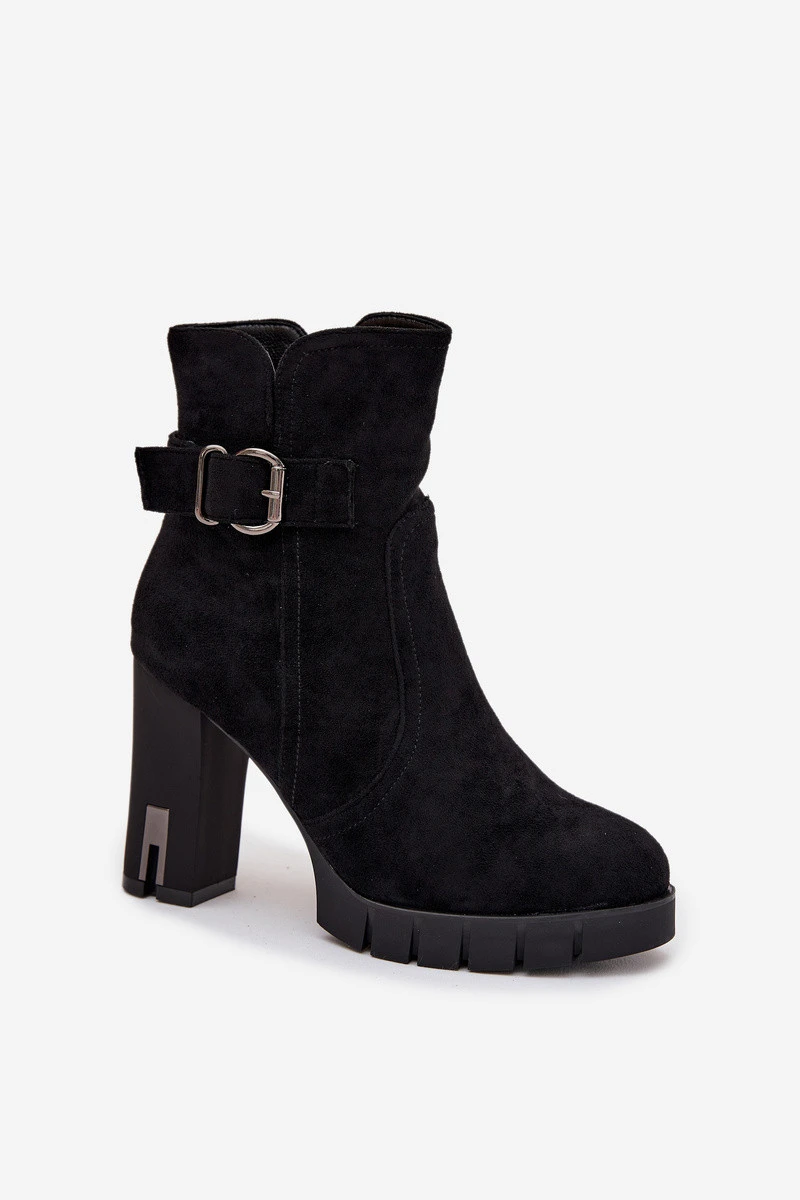 Dámské kotníkové boty na podpatku s přezkou zateplené černé model 21711634 - Boto