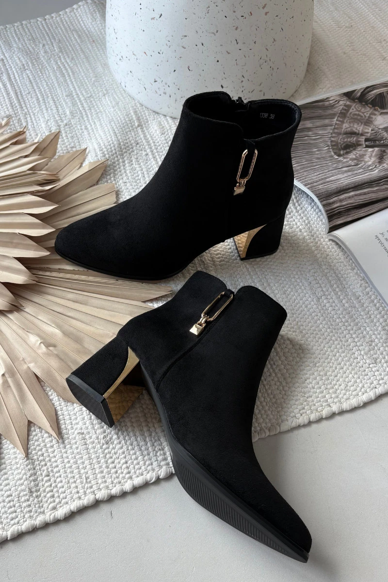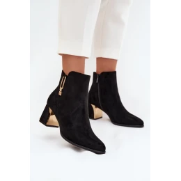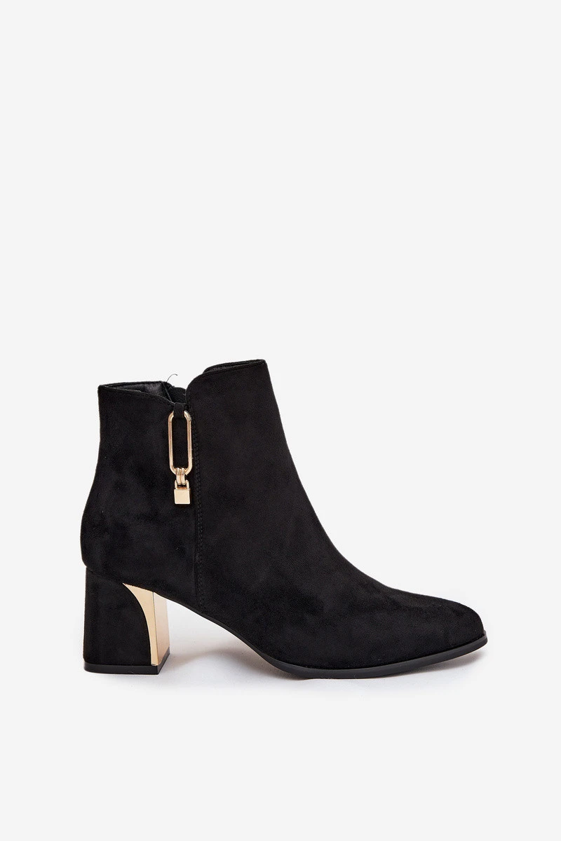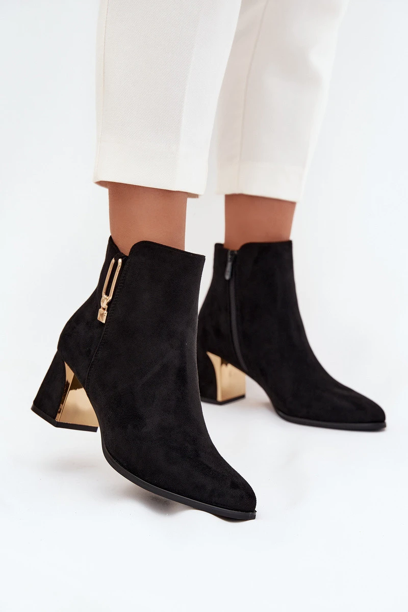 Dámské kotníkové boty na podpatku se zlatými detaily černé model 21710779 - Boto