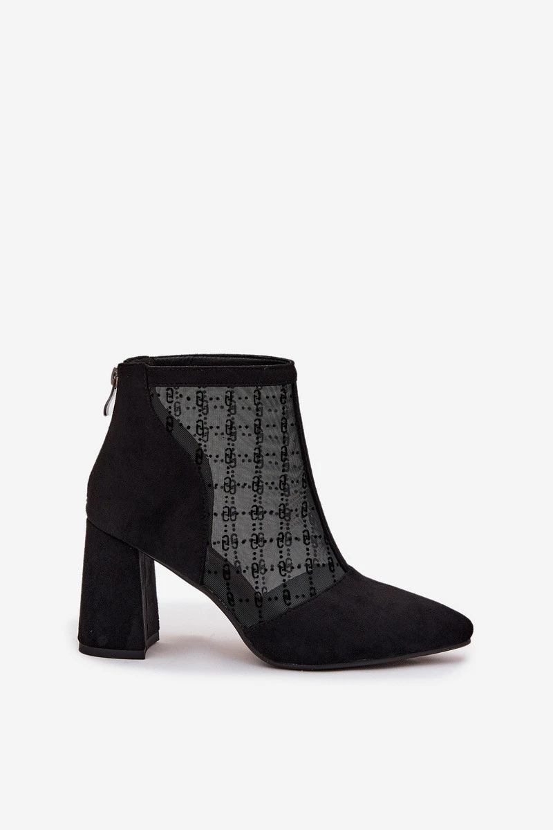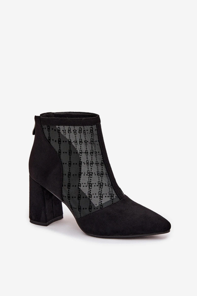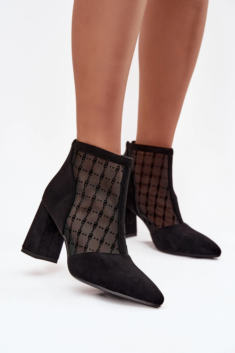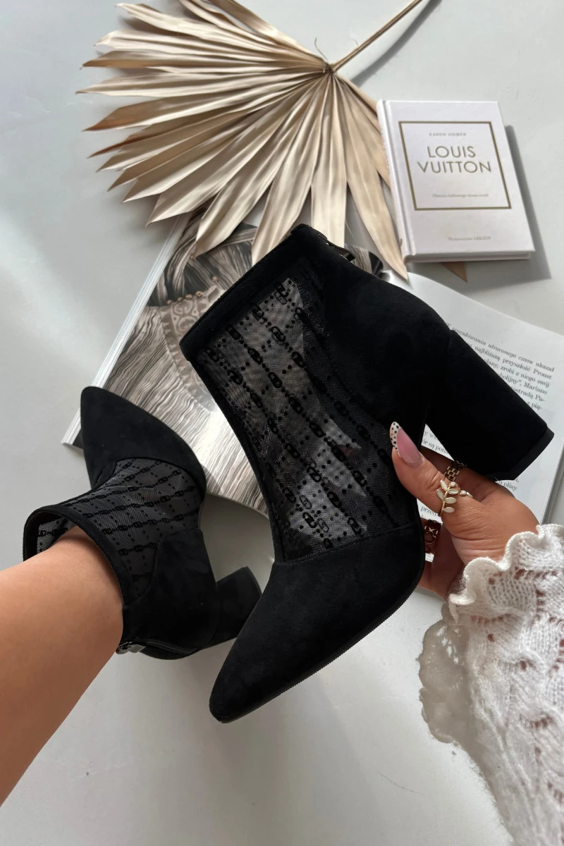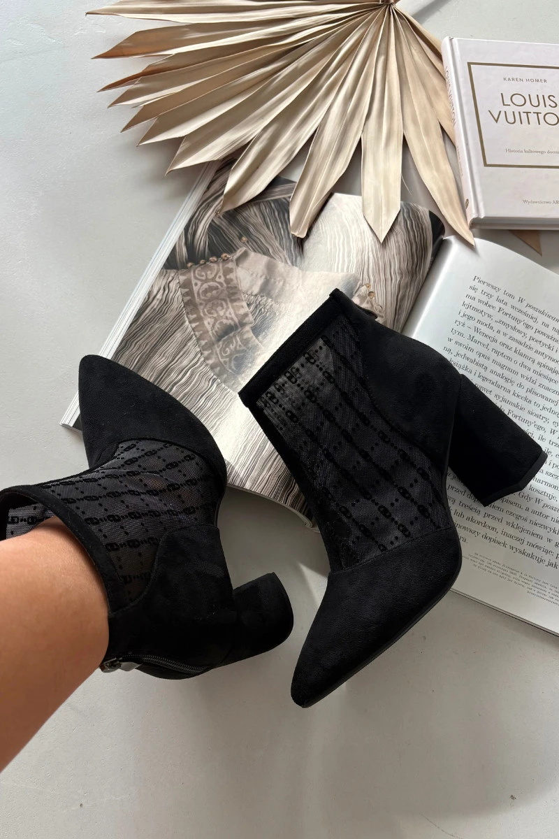 Dámské kotníkové boty vyrobené z ekologického semiše a síťoviny jsou modelem určeným pro výjimečné příležitosti. Špičaté špičky zdůrazňují ženský charakter bot, a podpatek ve tvaru sloupu přidává eleganci a opticky zeštíhluje siluetu. Zip umístěný vzadu na holeni zajišťuje pohodlí při obouvání a moderní vzhled. Prodyšná síťovina spojená s jemným semišem vytváří originální kombinaci, která se skvěle hodí k večerním stylizacím. Jsou to ideální boty na výlety, schůzky či párty, které se stanou efektním doplňkem elegantního outfitu. Při výběru velikosti se řiďte tabulkou velikostí. Při výběru velikosti se řiďte tabulkou velikostí.