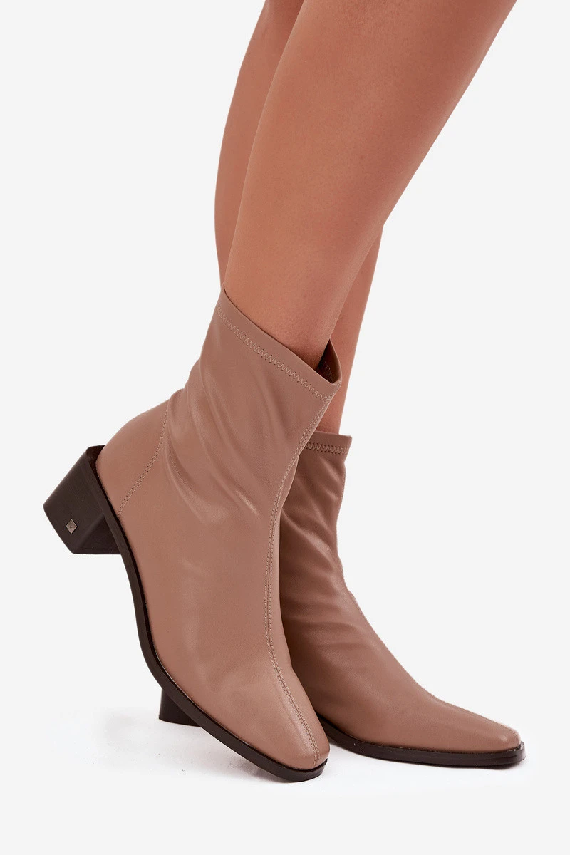 Dámské kotníkové boty na podpatku Vinceza 23-10791 Béžové