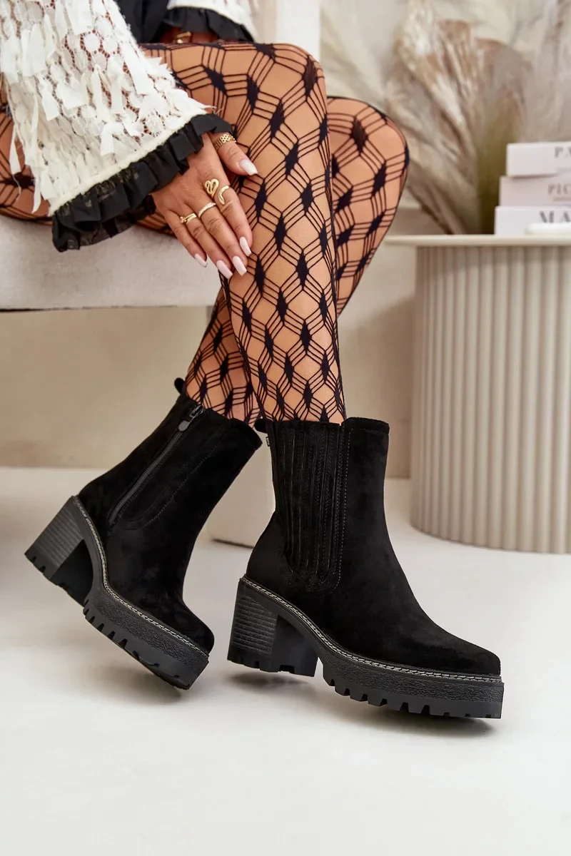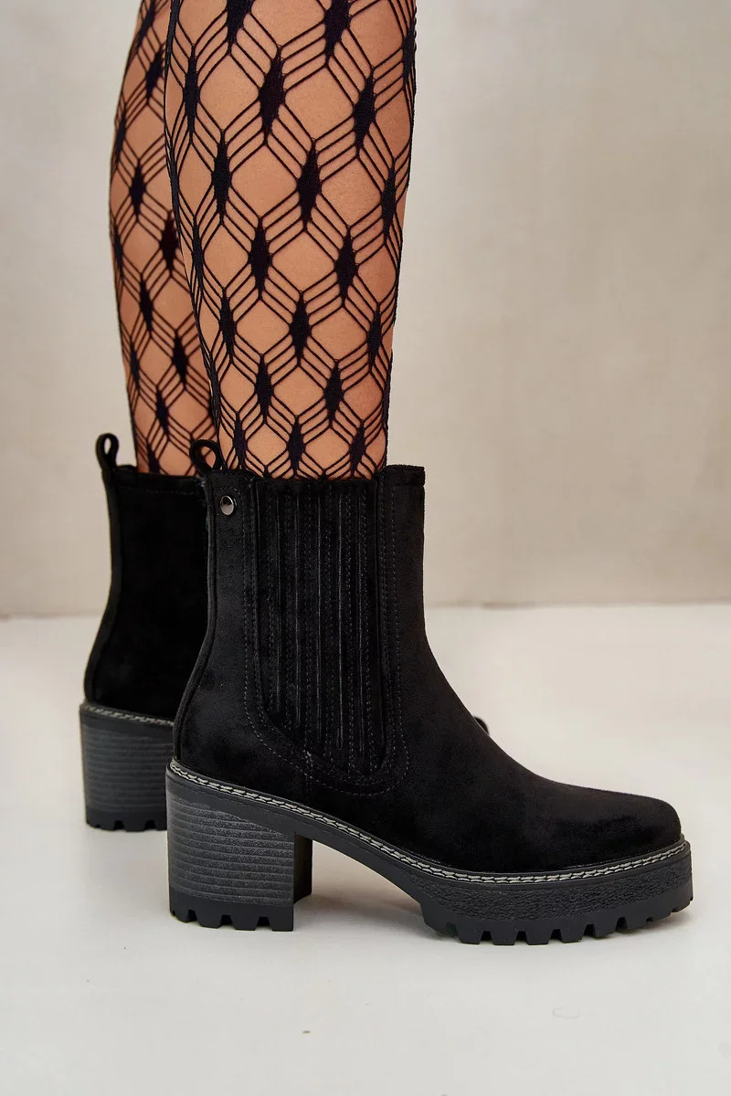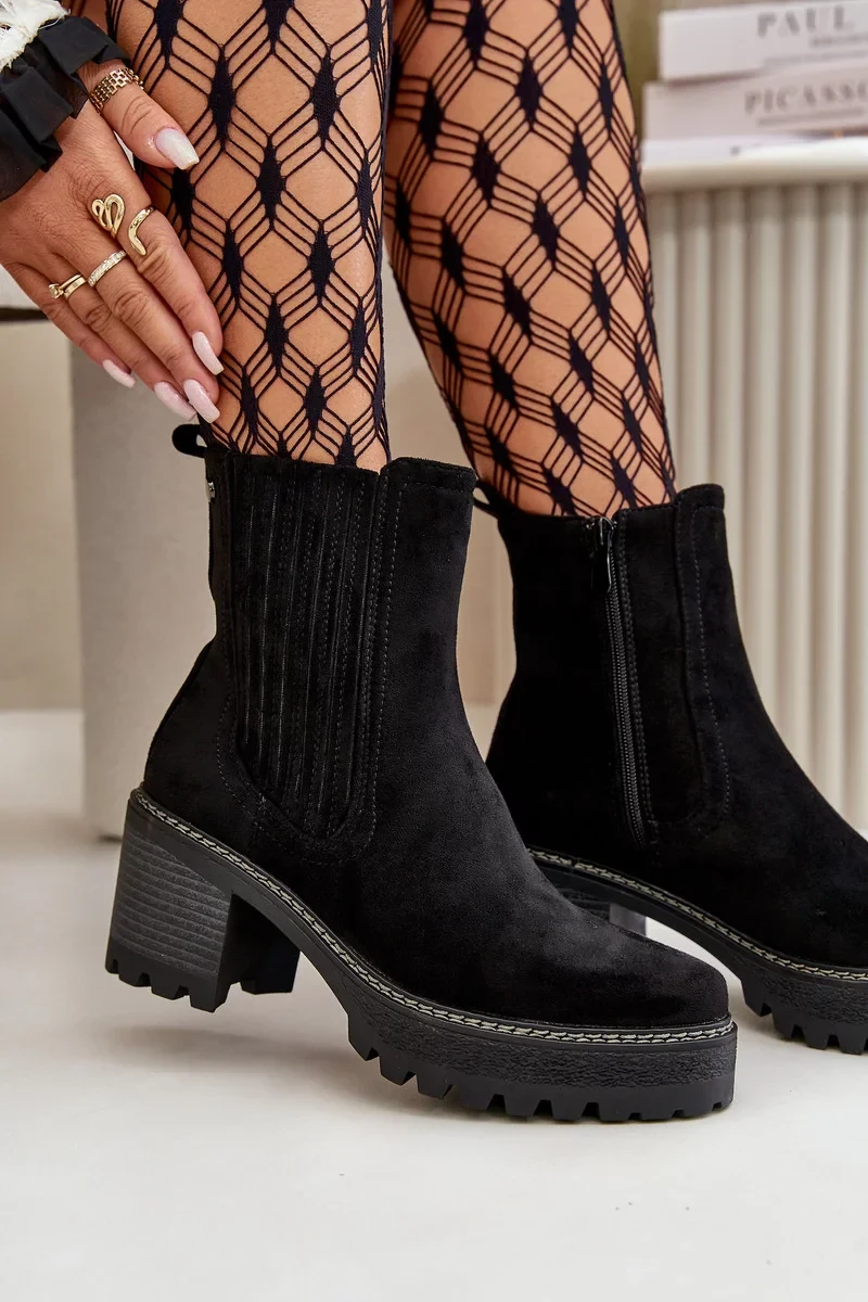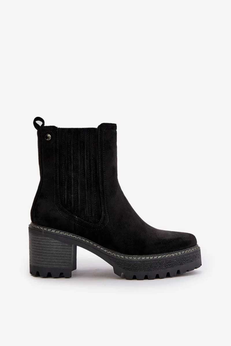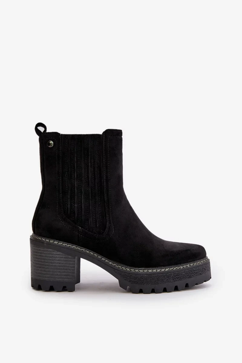 Dámské Kotníkové Boty Na Podpatku Z Eko Semiše Zateplené Černé Nevitas
