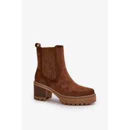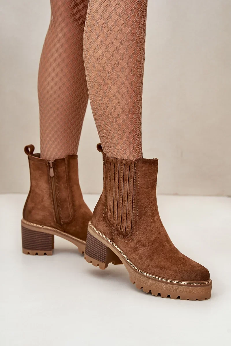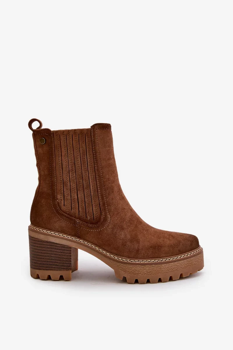 Dámské Kotníkové Boty Na Podpatku Z Eko Semiše Zateplené Tmavě Hnědé Nevitas