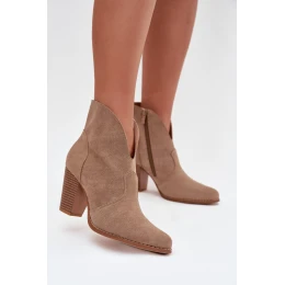 Dámské kotníkové boty na podpatku z ekokůže béžové model 21711571 - Boto