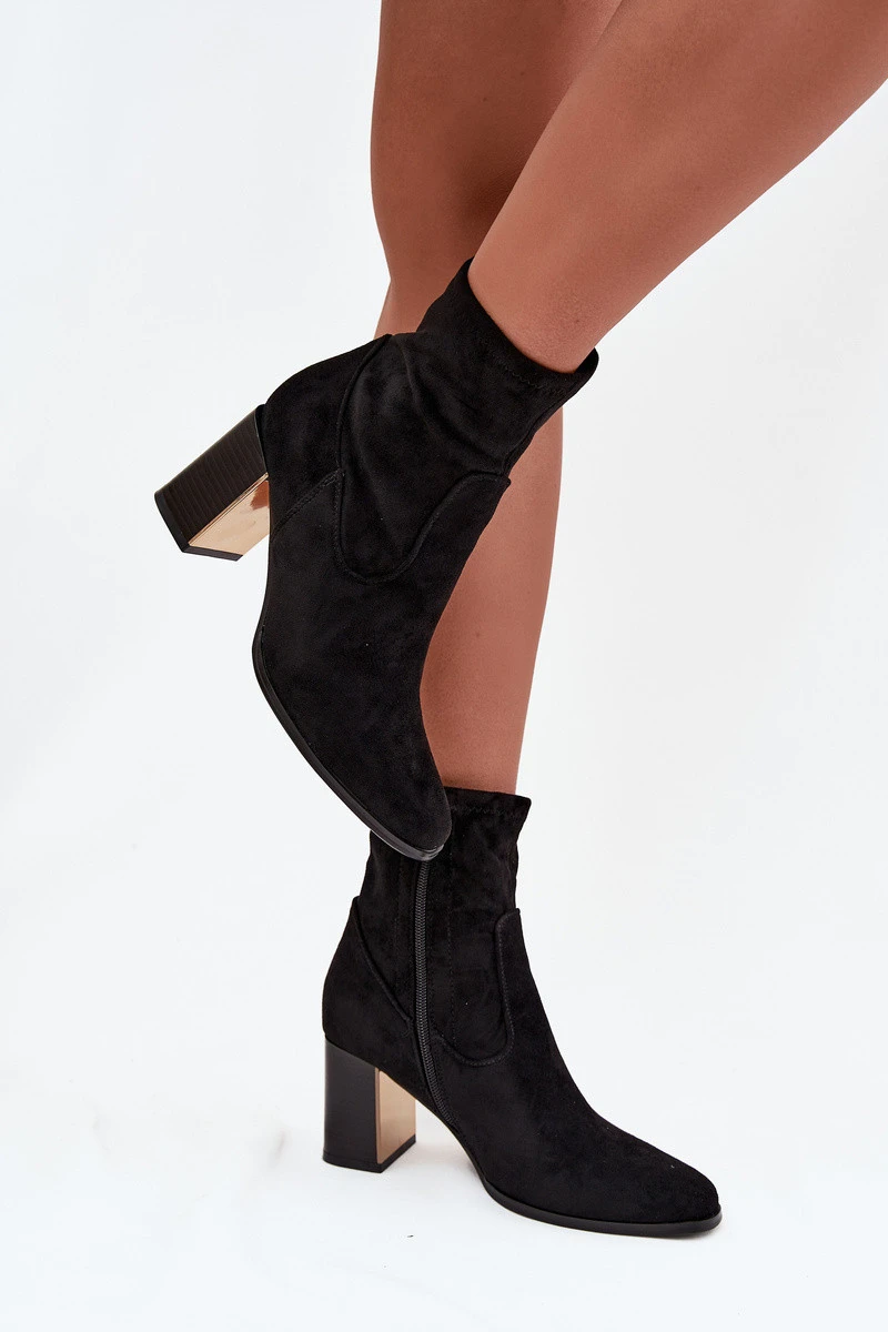 Dámské kotníkové boty na sloupku se zlatým zateplené černé model 21712211 - Boto