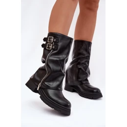 Dámské kotníkové boty s límcem zateplené s přezkami černé model 21788174 - Boto