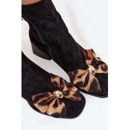 Boty jsou vyrobené z kvalitní eko kůže, která je odolná a snadno udržovatelná. Stabilní blokový podpatek zajišťuje komfort při chůzi a elegantní siluetu. Ozdobná mašle na svršku dodává botám sofistikovaný vzhled a módní akcent. Praktický boční zip umožňuje snadné nazouvání a perfektní přizpůsobení boty noze. Černý odstín je univerzální a snadno kombinovatelný s různými outfity.