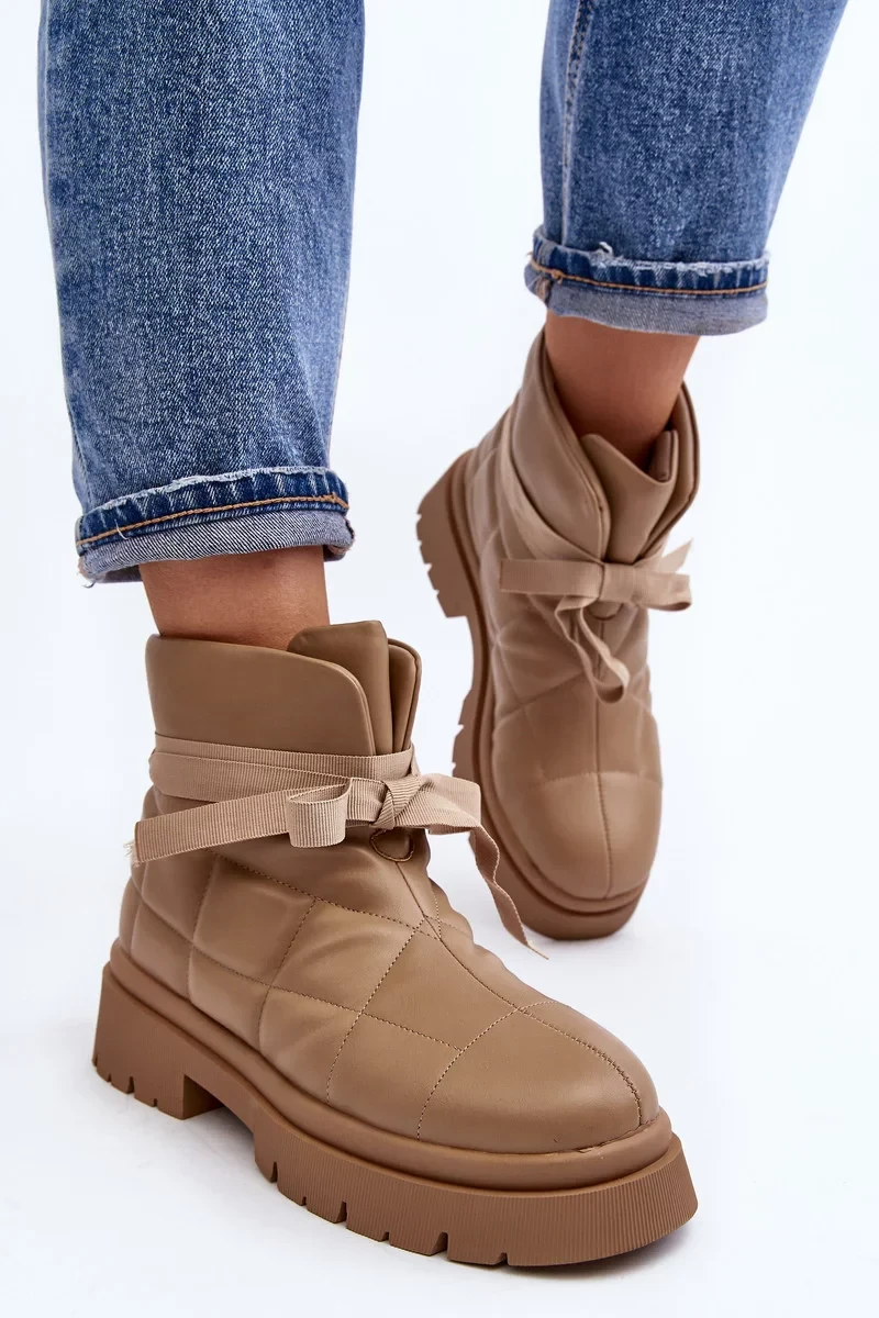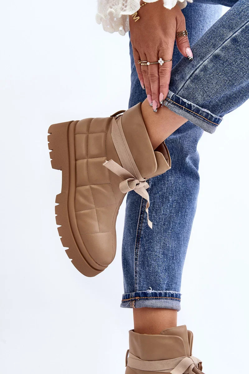 Dámské kotníkové boty s prošíváním a šněrováním Khaki Bizzanti