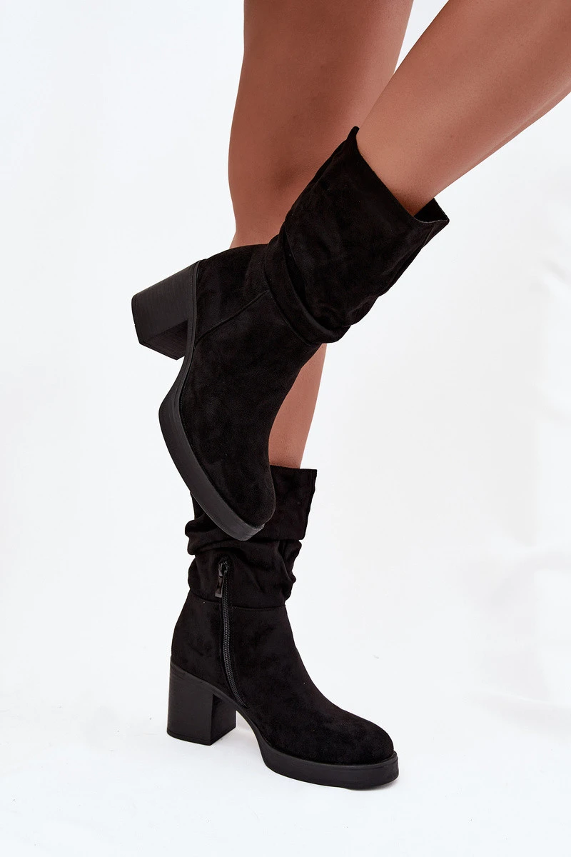 Dámské kotníkové boty s řasením na sloupku Vyhřívané Černé Amoria