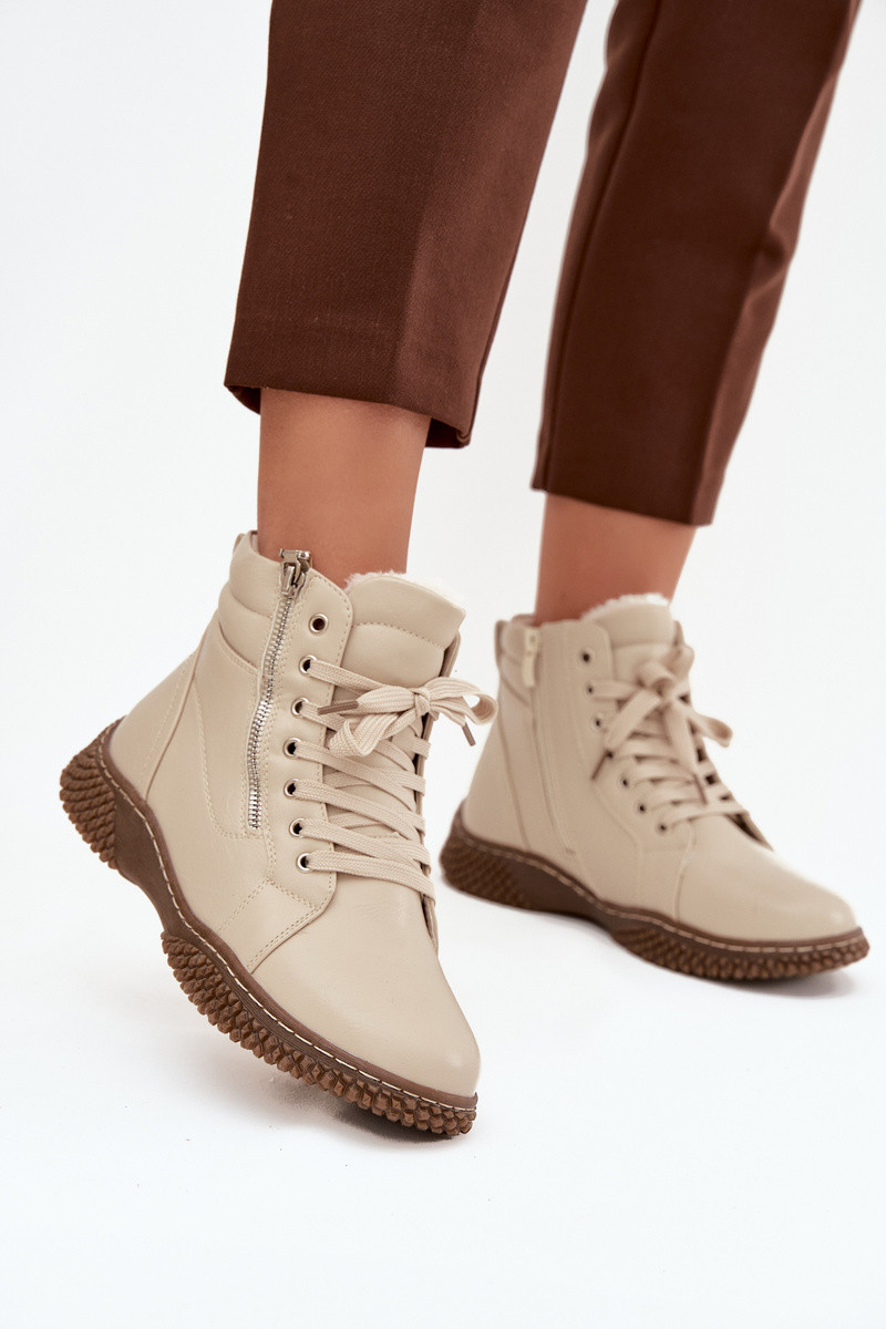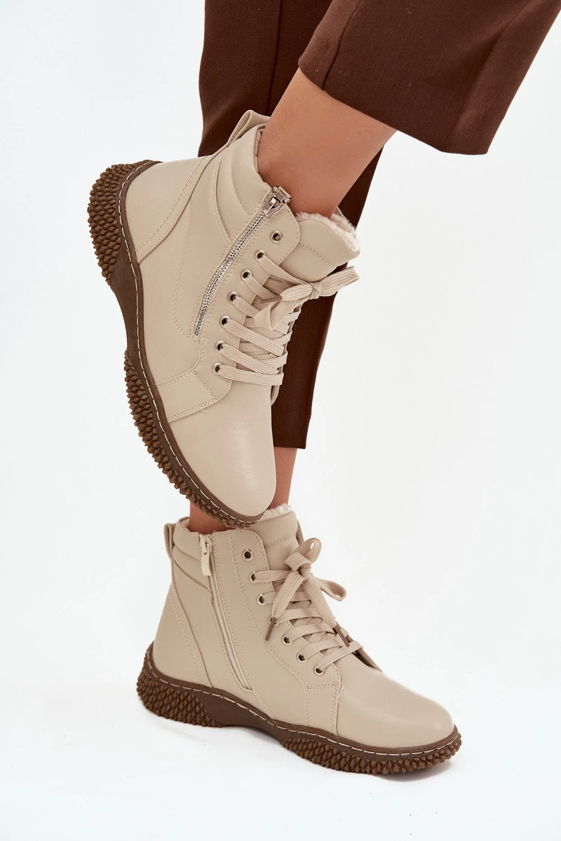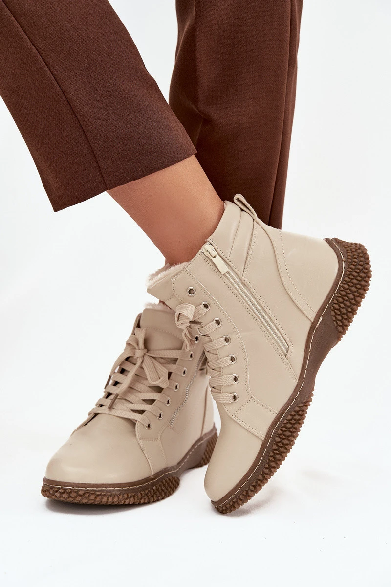 Dámské kotníkové boty s teplým kožíškem z eko kůže béžové Ulverina