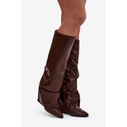 Dámské kotníkové boty se manžetou na sloupku – čokoládové model 21770166 - Kesi