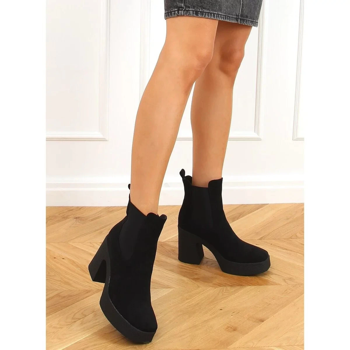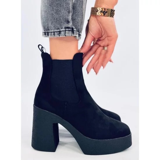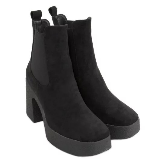 Dámské boty na gumovém podpatku o délce 9,5 cm a platformě o délce 3 cm. Model přitahuje pozornost nejmódnějším střihem s hranatými špičkami. Zaručujeme vám, že se s nimi nebudete chtít rozloučit: ) Botičky mají elastické vložky připomínající pantofle, které rovněž zajišťují pohodlné nazouvání. Jsou vyrobeny z ekologického semiše a uvnitř jsou podšity měkkou kožešinou.