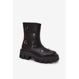 Dámské kotníkové boty Thavira na zip se zdobením – černé