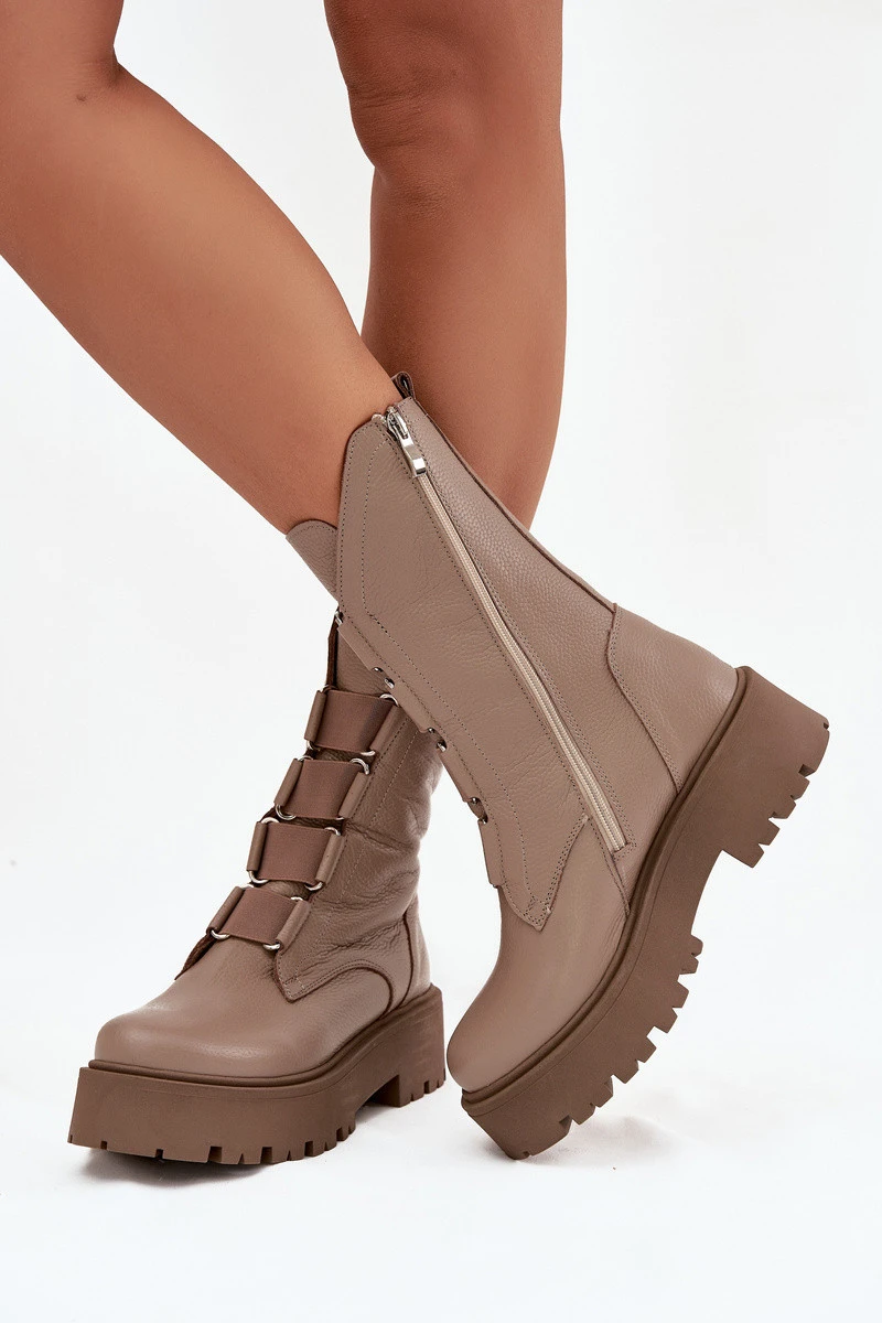 Dámské kotníkové boty z pravé kůže na platformě Zazoo 3795 béžové