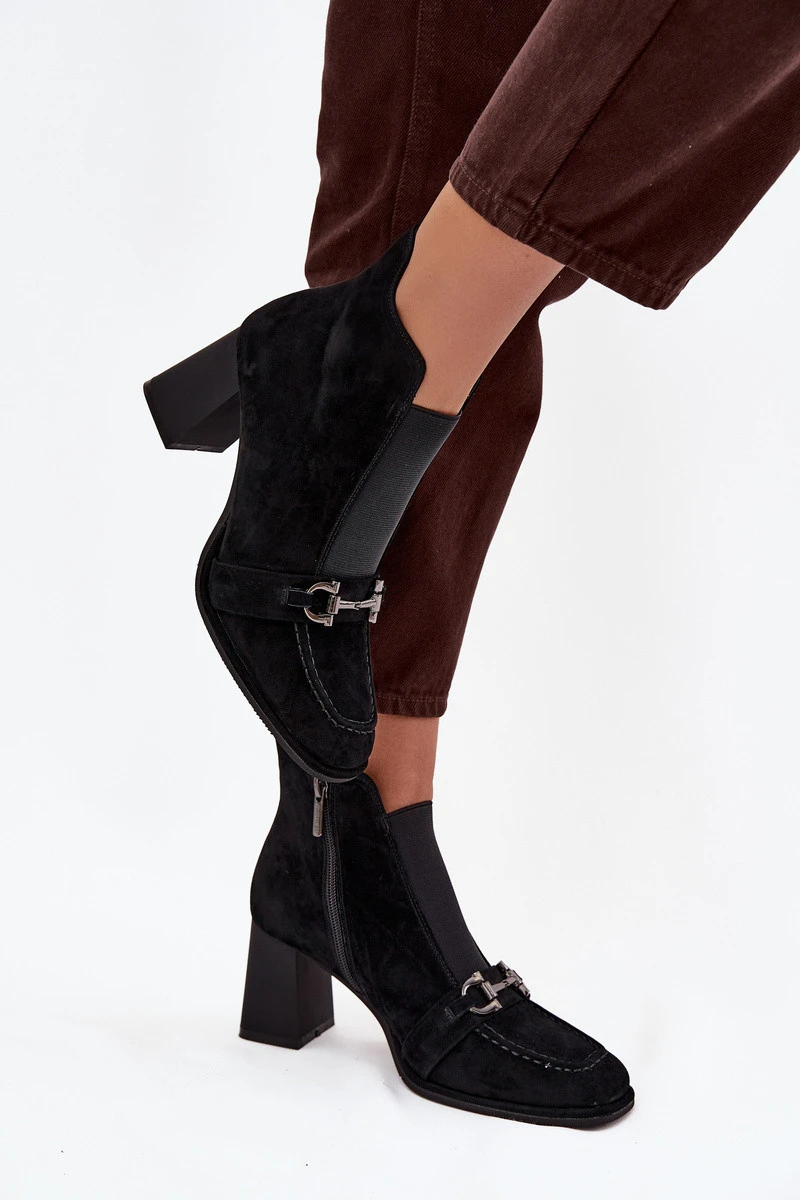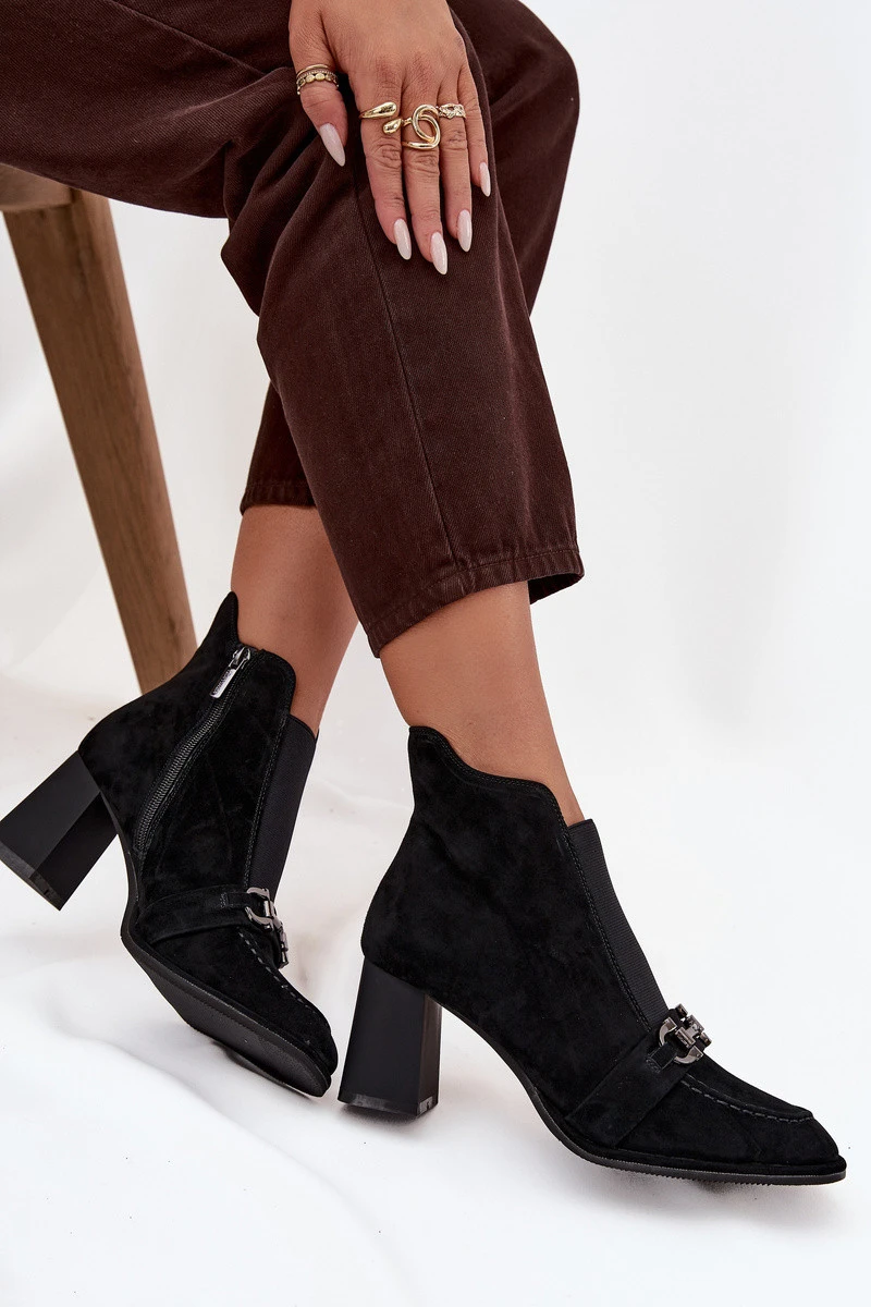 Dámské kotníkové boty z pravé semišové kůže na podpatku Artiker 57C0124 Černé