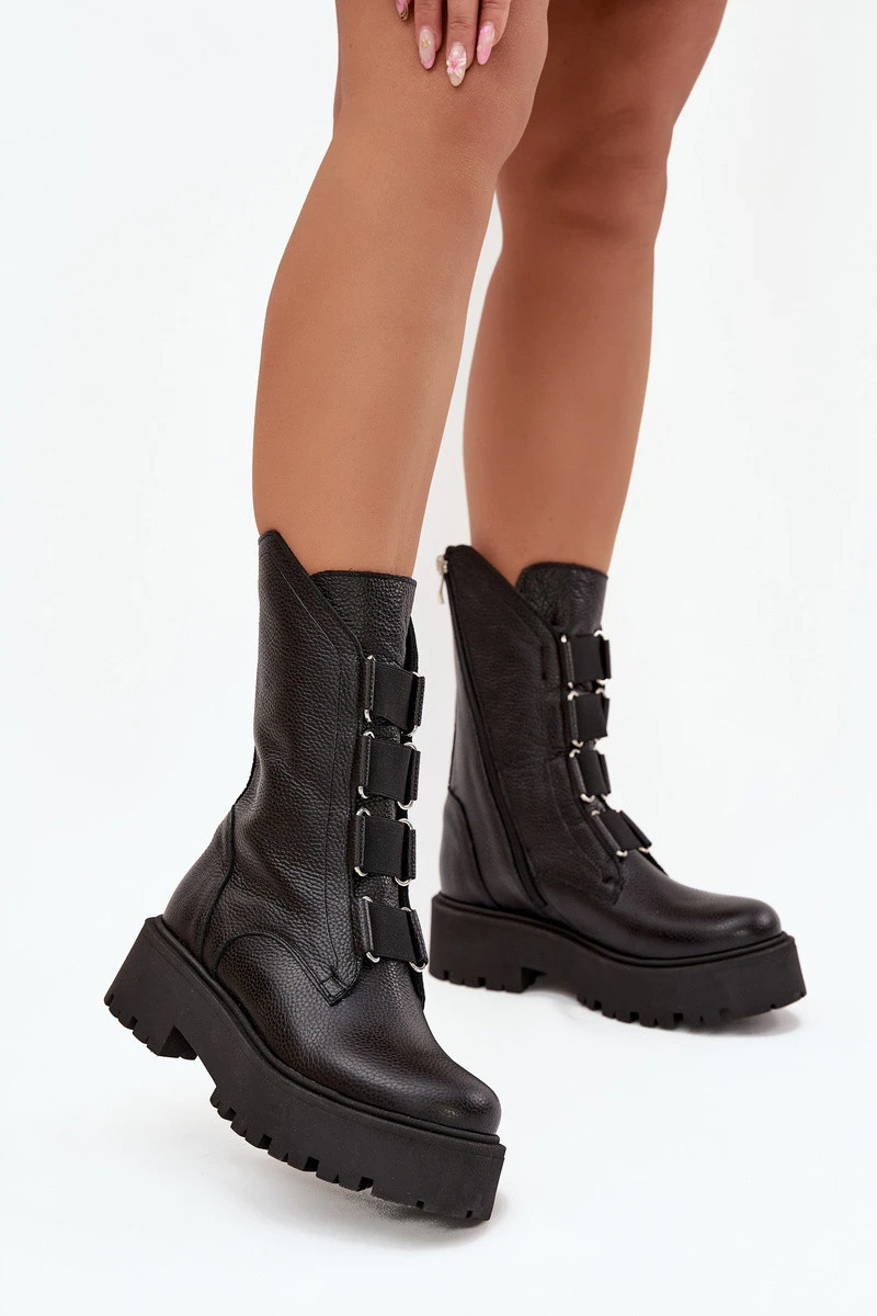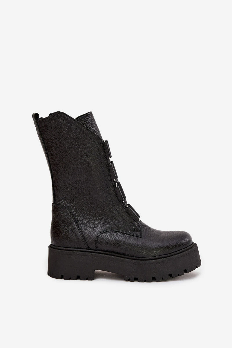 Dámské kotníkové boty z přírodní kůže na platformě model 21713280 Černé - Zazoo