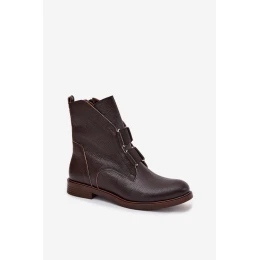 Dámské kotníkové boty z přírodní kůže na plochém podpatku Zazoo – čokoládové