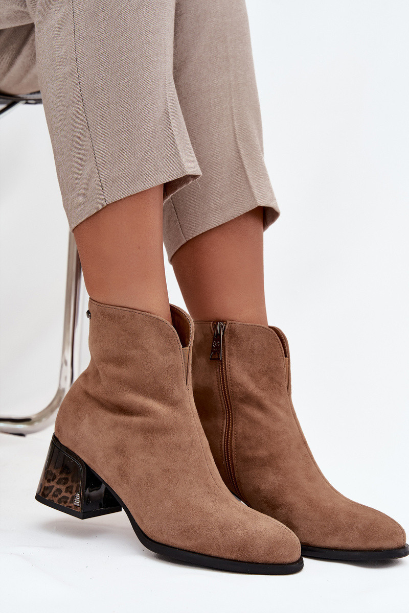 Dámské kotníkové boty z přírodní semiš s podpatkem vyhřívané Vinceza 66806 Camel