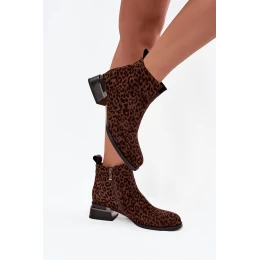 Dámské kotníkové boty z přírodní semišové kůže – hnědé (panterka)