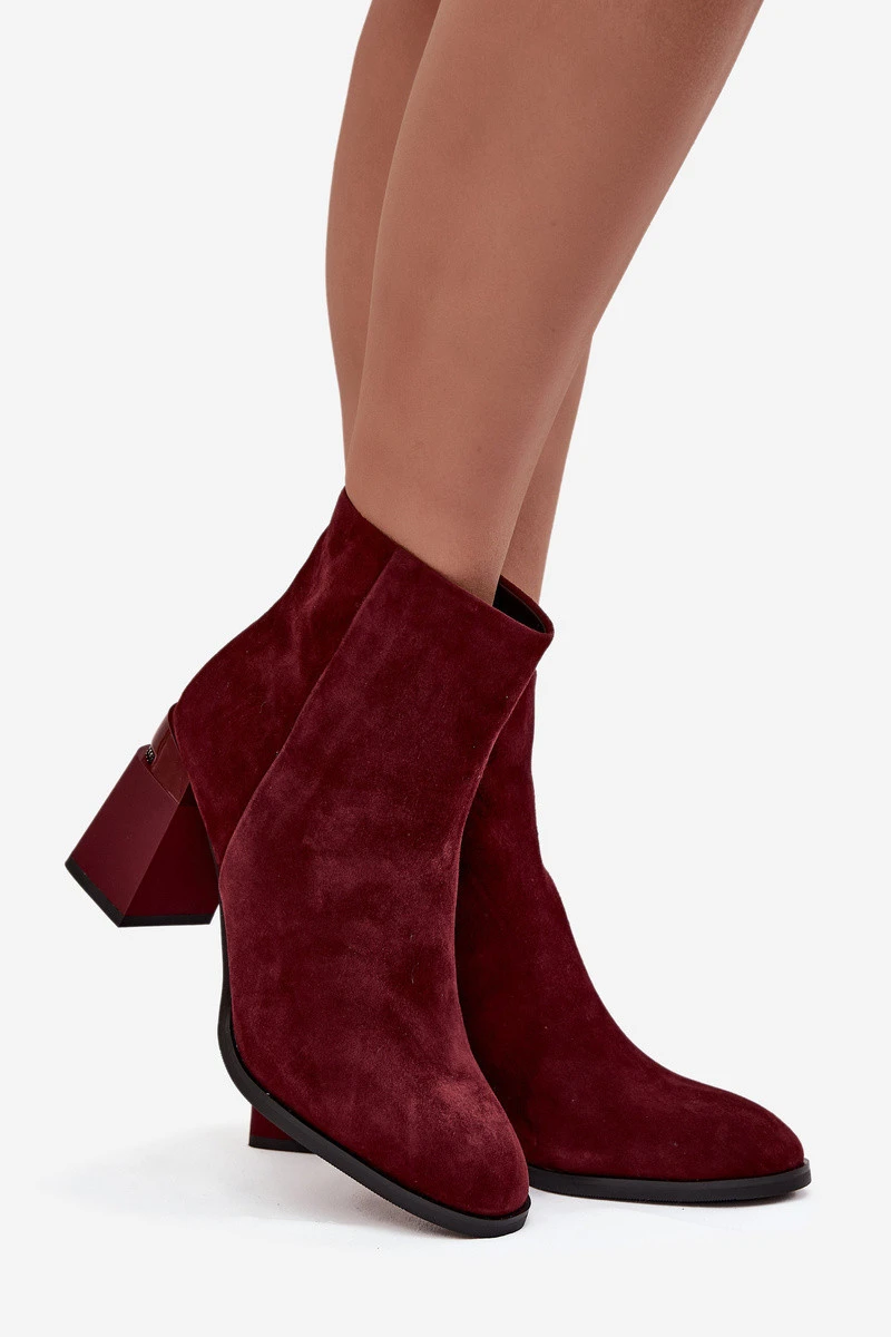 Dámské kotníkové boty z přírodní semišové kůže na podpatku vyhřívané D&A CR52-718 bordó