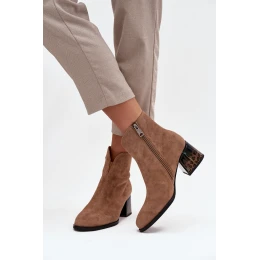 Dámské kotníkové boty z přírodního semiše na podpatku, zateplené Vinceza – camel