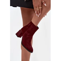 Dámské kotníkové boty z přírodního semiše na sloupkovém podpatku D&A – bordó