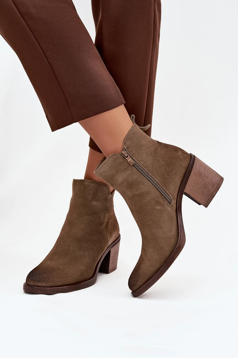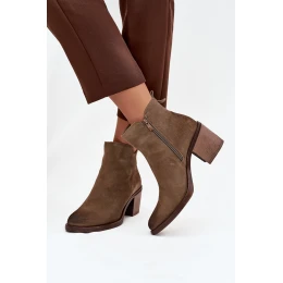 Dámské kotníkové boty z přírodního semiše na sloupku vyhřívané Sergio Leone BT25321-S khaki