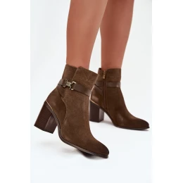 Dámské kotníkové boty z přírodního semiše na sloupku vyhřívané Sergio Leone BT25384-S Khaki